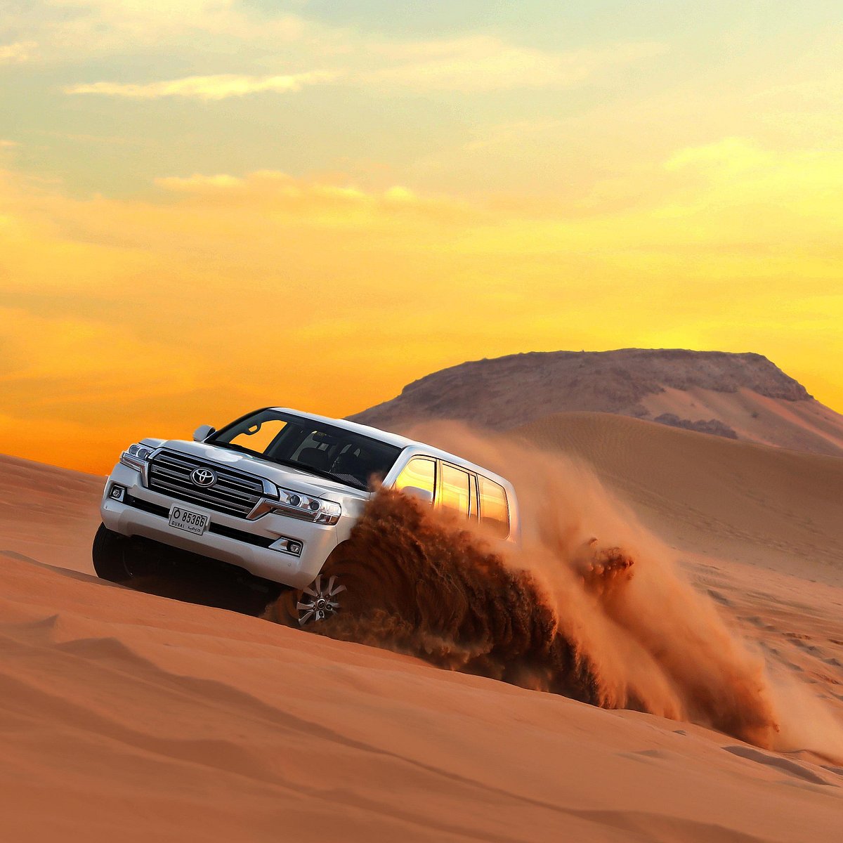 Your afternoon transitions into an unforgettable Arabian adventure. Venture into the golden sand dunes aboard a powerful 4x4 vehicle for thrilling dune bashing and sunset photography.