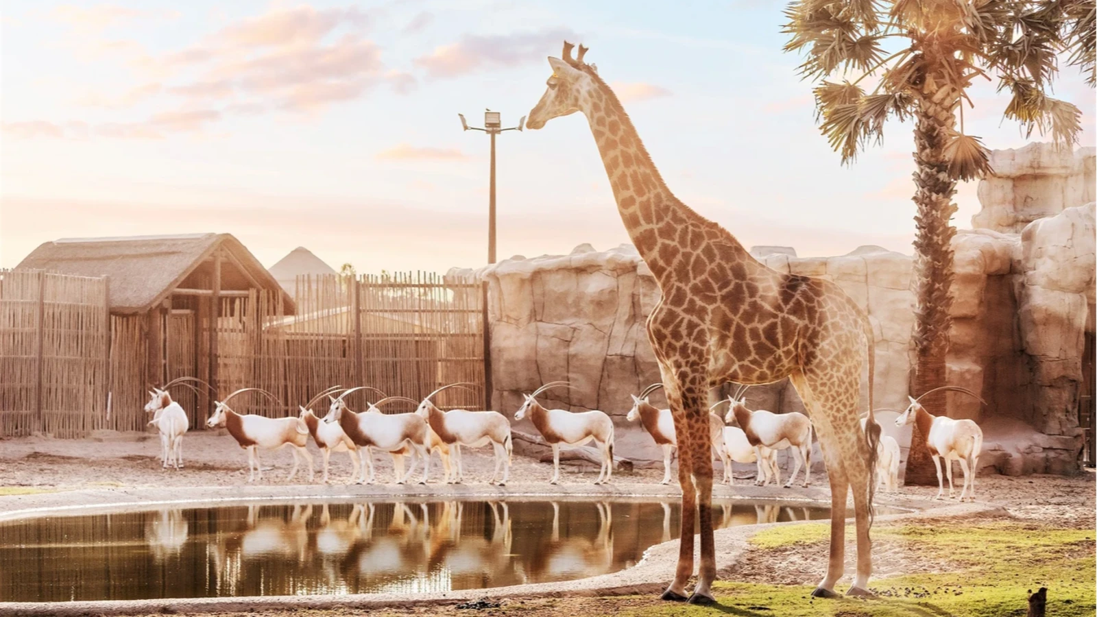 Explore four themed sections replicating African savannahs and Arabian landscapes.