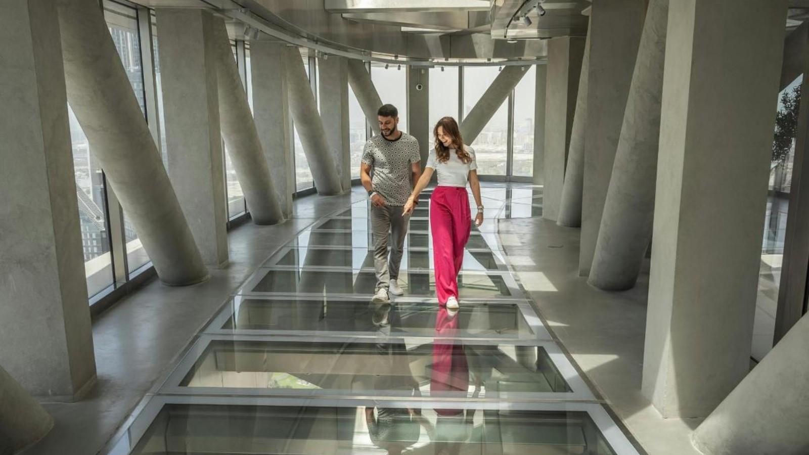 Walk on a 25-meter glass floor and experience breathtaking views of the city's skyline and coast